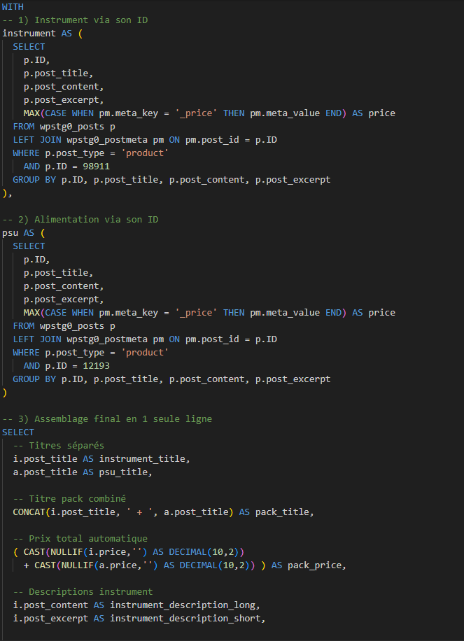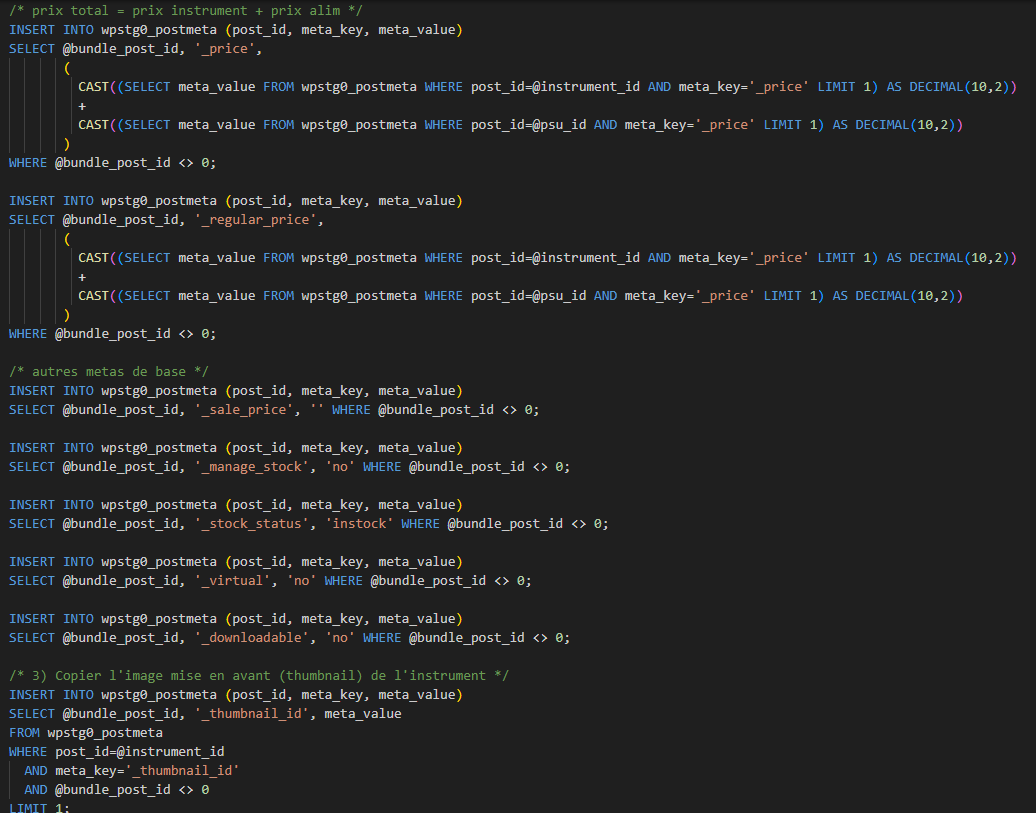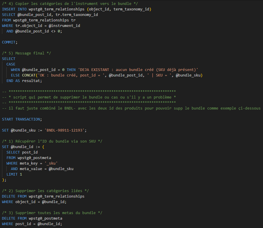J’ai travaillé sur la création automatique de bundles pour les pianos et claviers Yamaha à l’aide de requêtes SQL et de triggers.