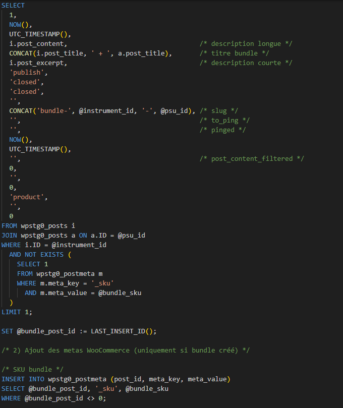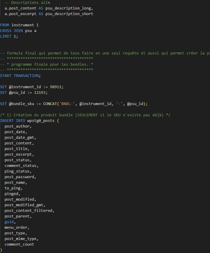 J’ai finalisé les requêtes SQL permettant de créer automatiquement les bundles.