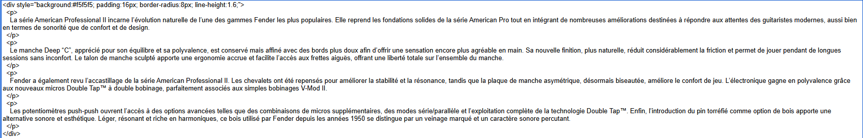 Je devais rédiger une description courte et une description longue en respectant un modèle imposé afin d’assurer une présentation homogène sur le site e-commerce.